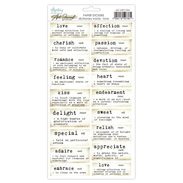 1 planche de stickers, format : 15x30cm, Art journal - Dictionary words (en anglais) - Love