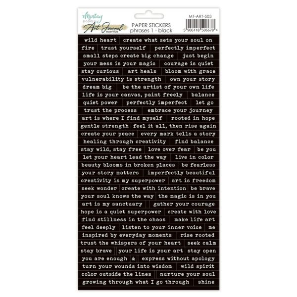 1 planche de stickers, format : 15x30cm, Art journal - noir (phrases/mots en anglais)