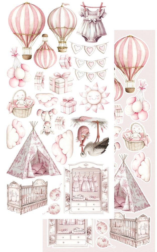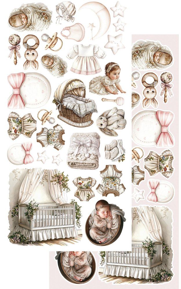 12 feuilles, 15x30cm, collection : Baby, girl - 250gsm