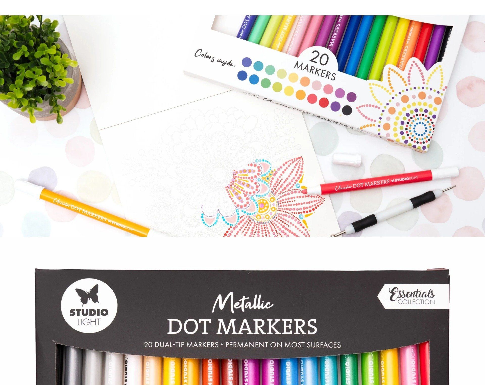 20 feutres, StudioLight - Metallic Dot markers