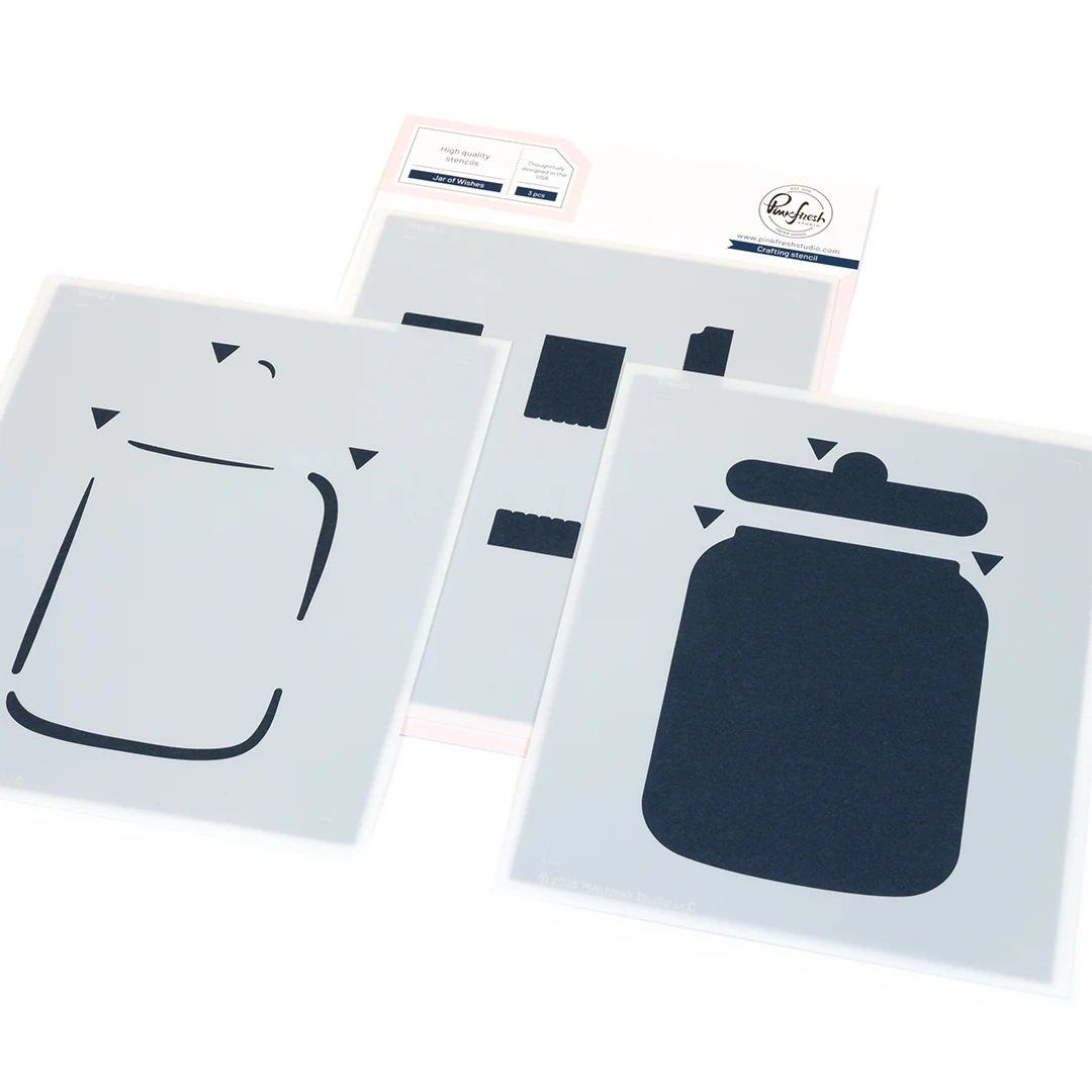 3 Pochoirs - PinkFresh, Jar of wishes - dimension 12.7x15.6cm environ