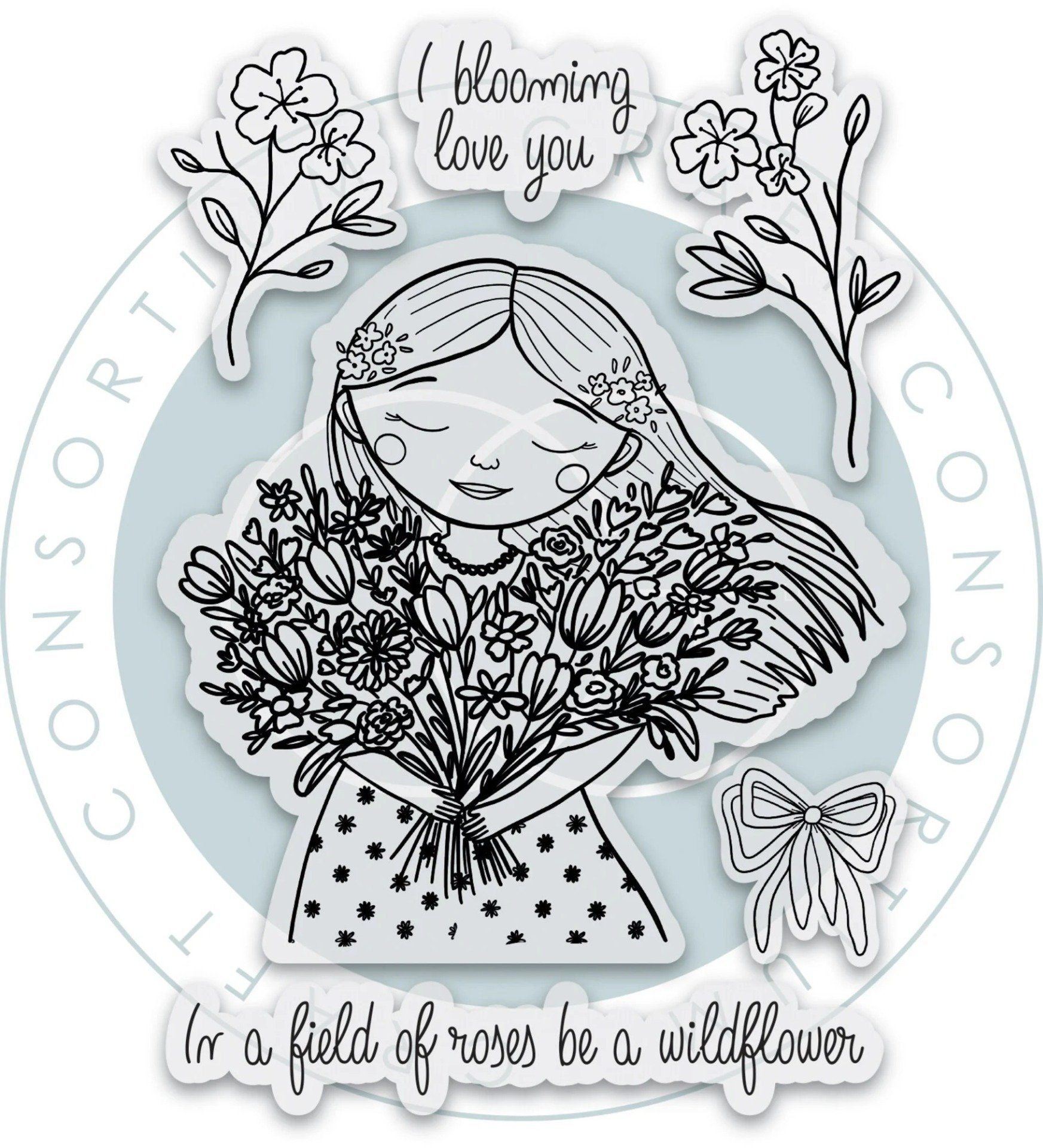 6 tampons , Craft Consortium, Olivia's, Wildflower Adventure, dim. de la planche : 14.5x10cm env.