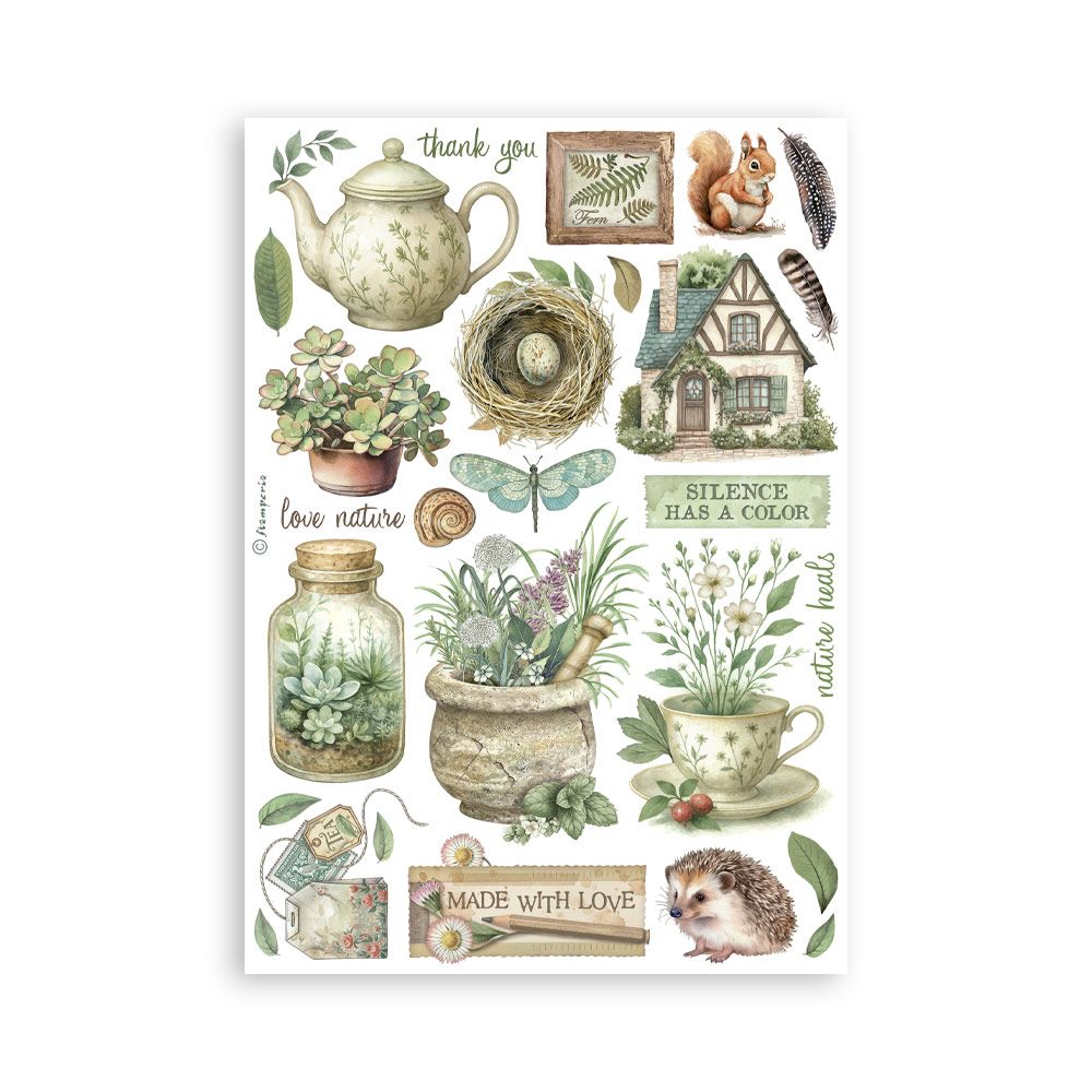 8 feuilles, éléments autocollants, dim. 14.5x21cm environ, Herbarium Silvae, Stamperia