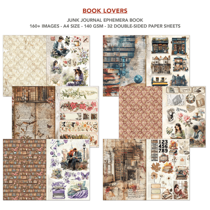 Book lovers, format A4 - 32 feuilles de papier recto verso