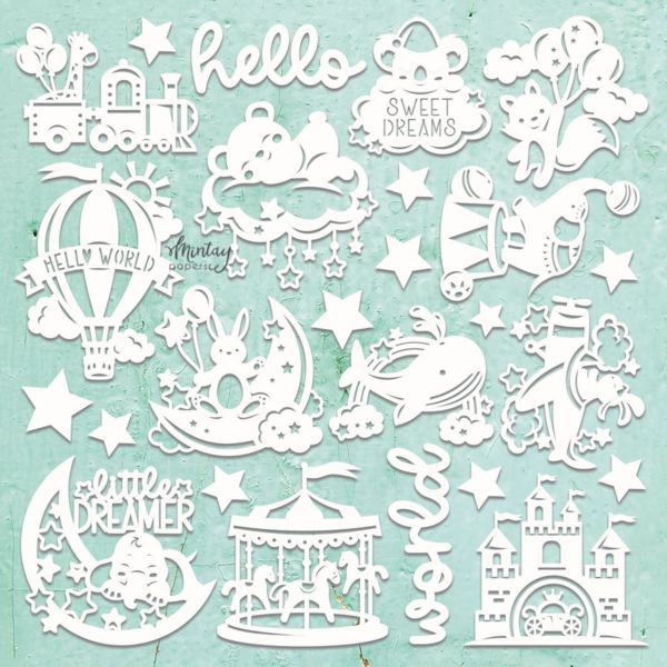 Chipboards, Mintay chippies - Baby love - planche de 30x30cm