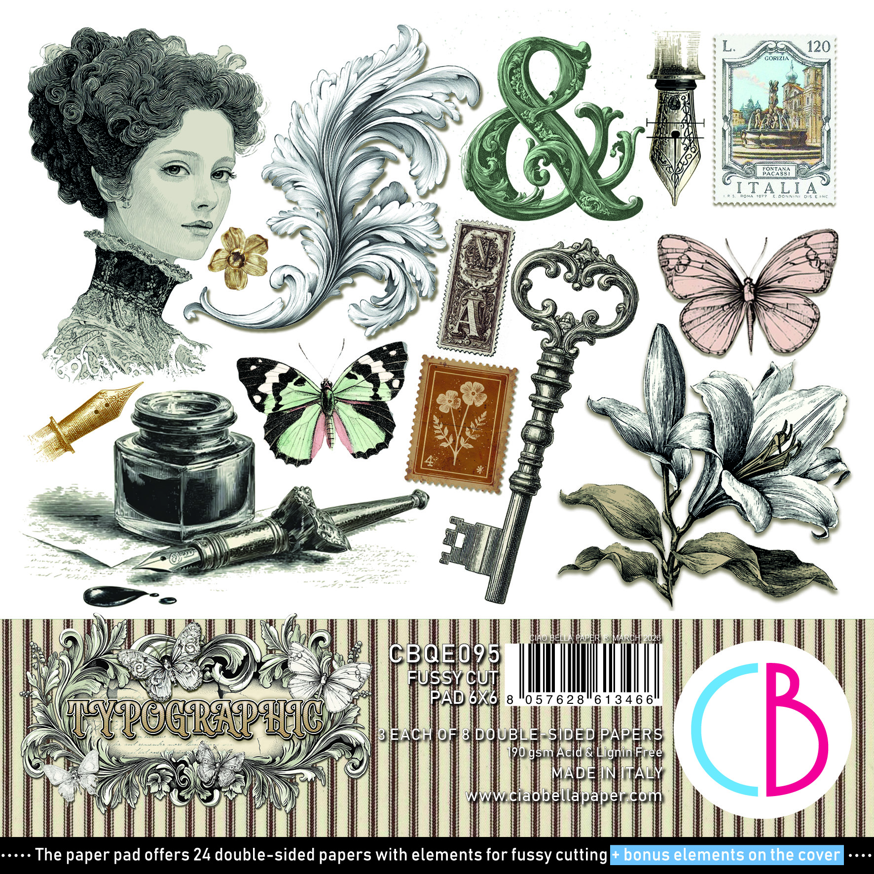 Ciao Bella, collection Typographic - 15x15cm - 24 feuilles - 190gsm