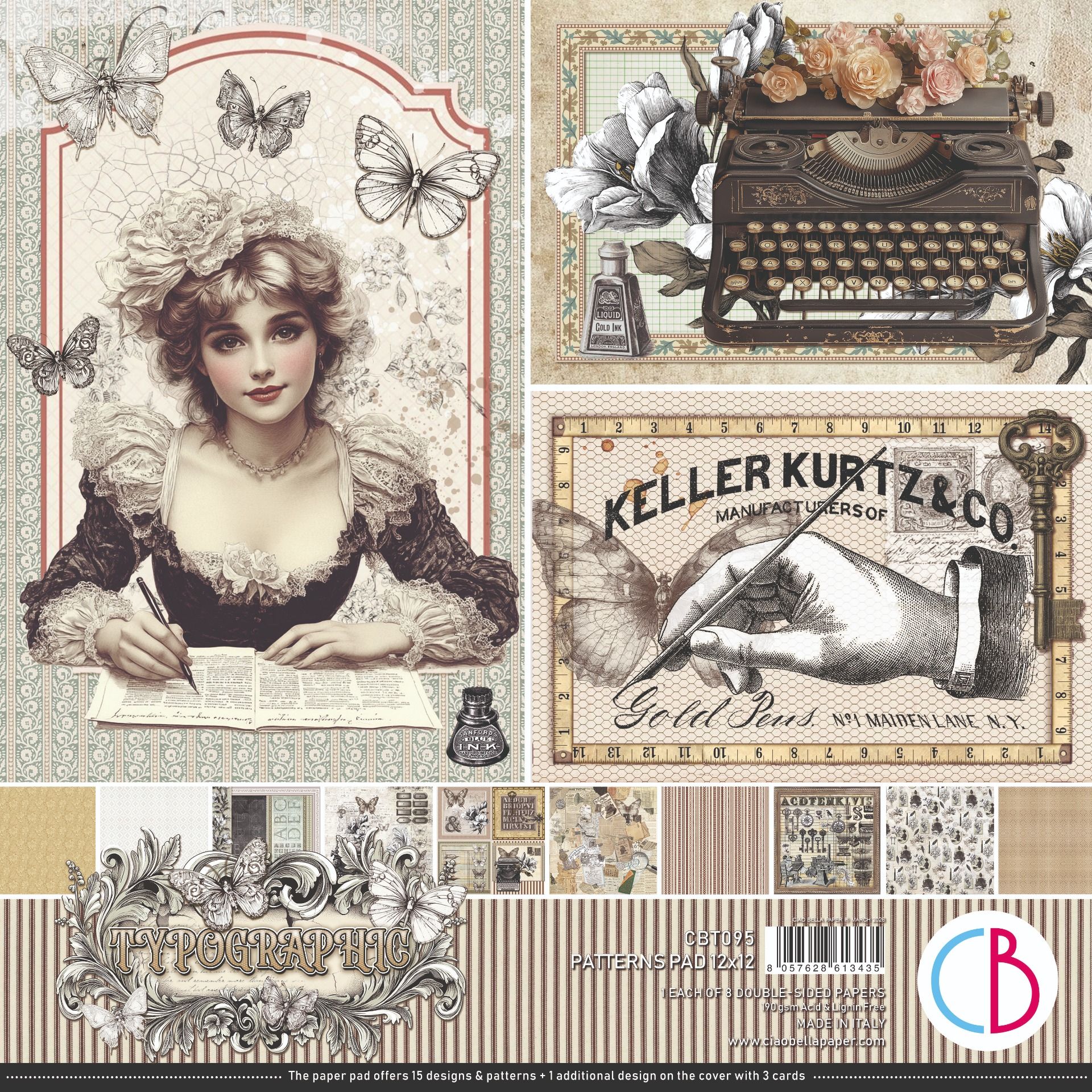 Ciao Bella, collection Typographic - Patterns - 30x30cm - 8 feuilles - 190gsm