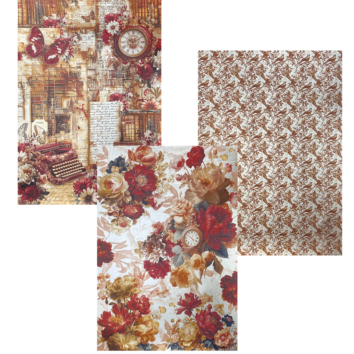 Ce paquet propose 6 motifs différents : 3 feuilles Deluxe et 3 feuilles vellum