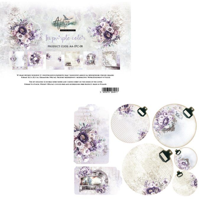Ensemble de 12 feuilles, 20x20cm, collection : In purple colors, 250gsm