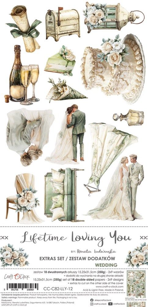 Ensemble de 18 feuilles, 15x30cm, collection : Lifetime Loving You, Craft O Clock, 250g