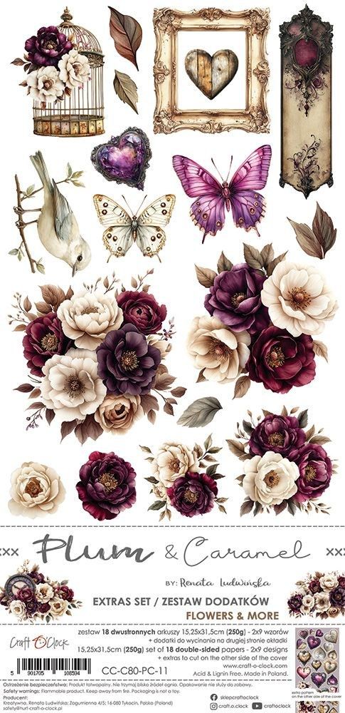 Ensemble de 18 feuilles, 15x30cm, collection : Plum & Caramel, Craft O Clock, 250g