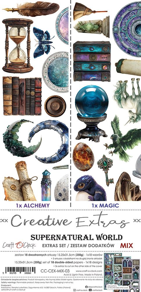 Ensemble de 18 feuilles, 15x30cm, collection : Supernatural world, Craft O Clock, 250g - Mix