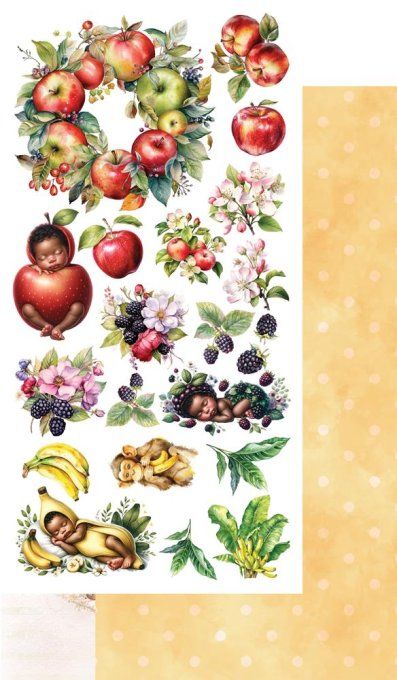 Ensemble de 5 feuilles, 15x30.5cm, collection : My little baby, Fruit - 250g