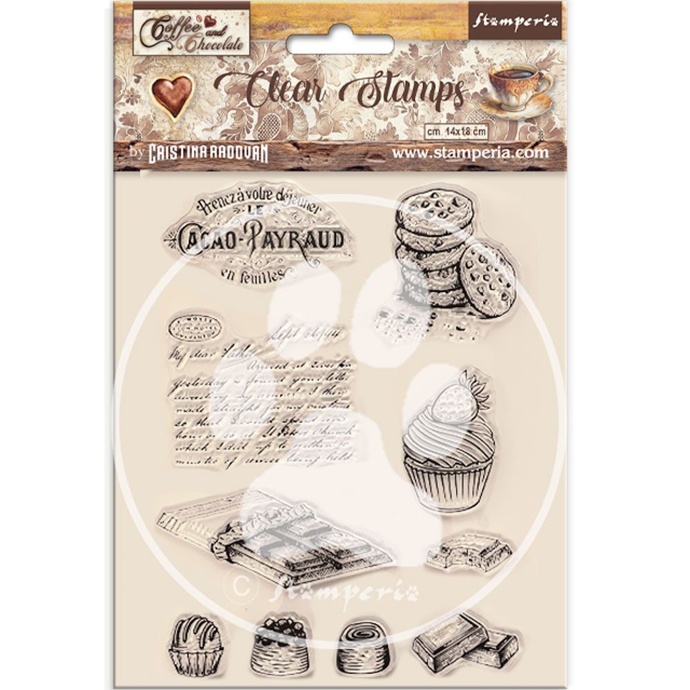 Ensemble de Tampons, Stamperia, Coffee and chocolate, dimension de la planche 14x18cm
