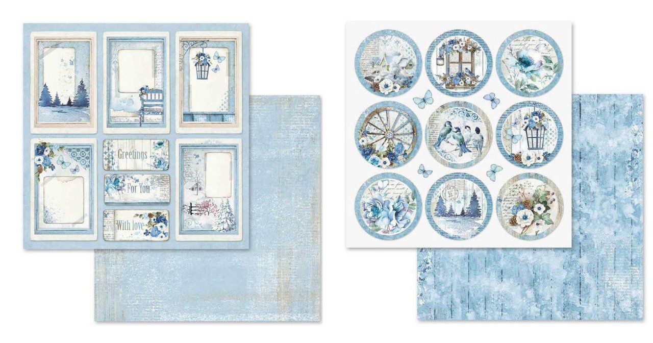 | Assortiment de papier, Collection Blue Land - Stamperia Papiers 30.5x30.5cm environ lot de 10 feuilles - 170g Vendu au bloc |