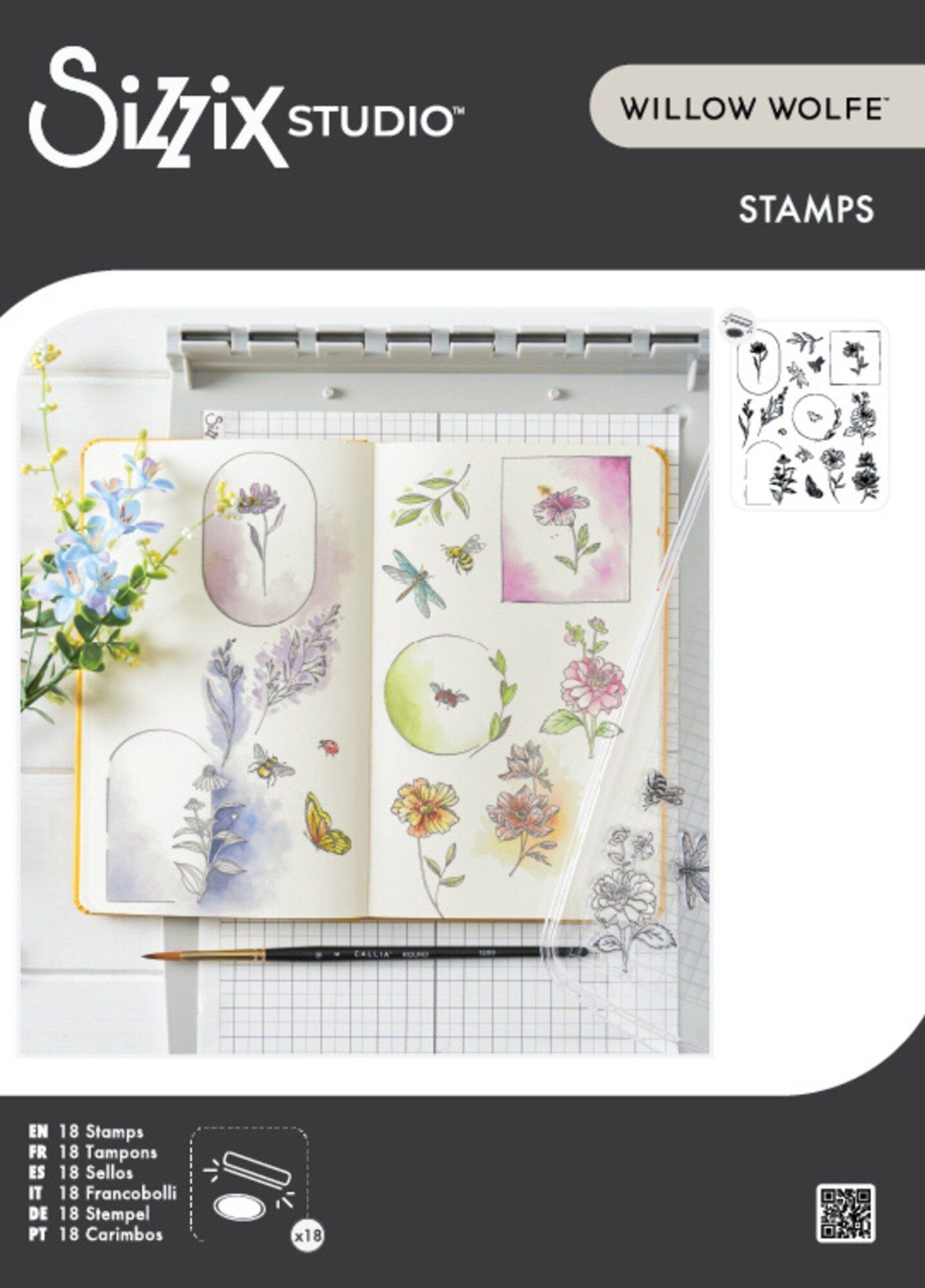 Le set de tampons transparents Sizzix Studio 5x8 (18 pièces) - Cadres floraux et mini-fleurs de Willow Wolfe est un impressionnant ensemble de 18 tampons transparents conçu pour être utilisé avec l'outil de repérage Sizzix. Ce set vous permet d'ajouter facilement et avec précision d'élégants cadres, des fleurs et du feuillage à vos créations. Composé de cadres carrés, circulaires et ovales associés à de délicates fleurs et feuilles, ce set est idéal pour encadrer des messages, embellir des pages de journal, agrémenter des cartes et ajouter de subtiles touches botaniques à vos projets de techniques mixtes. Conçu dans le style artistique unique de Willow Wolfe, ce set apporte une élégance raffinée et un charme artisanal harmonieux à toutes vos créations. Utilisez-le avec l'outil de repérage pour un alignement parfait des motifs superposés, tout en préservant votre liberté créative et votre expression artistique.