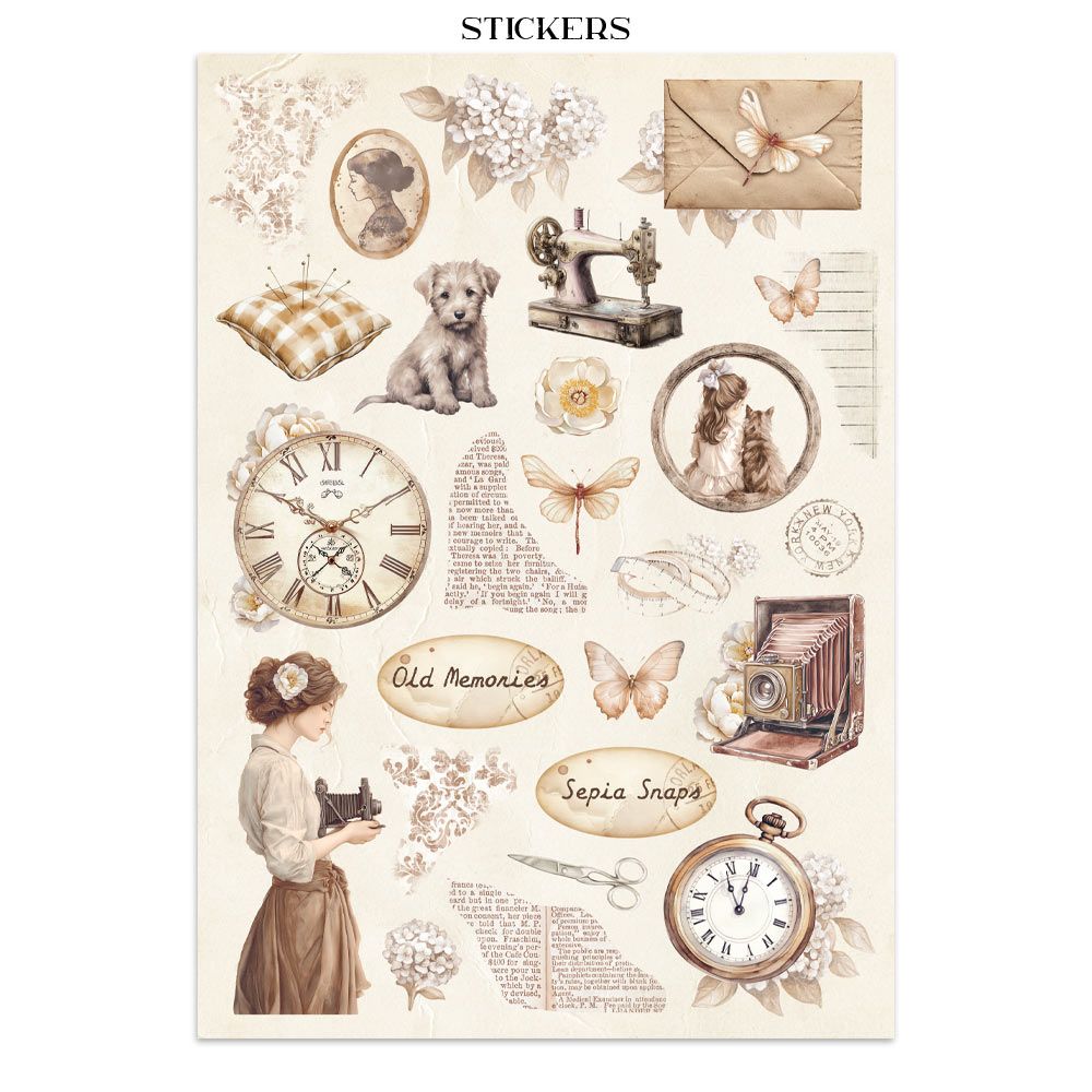 Ce carnet créatif comprend 16 pages pour le dessin et la création de cartes. Il contient : 8 pages recto-verso en papier cartonné (220 g/m²), 4 pages adhésives avec autocollants (120 g/m²) et 4 pages recto-verso avec découpes (220 g/m²). Dimensions : 21 x 29,7 cm (8,3 x 11,7 pouces). Sans acide.
